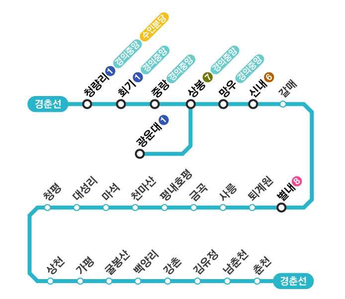 ✅️ 경춘선은 서울 청량리역에서 출발해 강원도 춘천역까지 연결되는 수도권 전철 노선으로, 중간에 다양한 정차역을 지나게 됩니다.