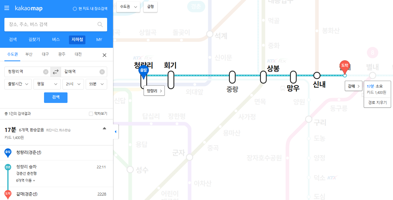 🚉 경춘선 노선도 구간정보 안내