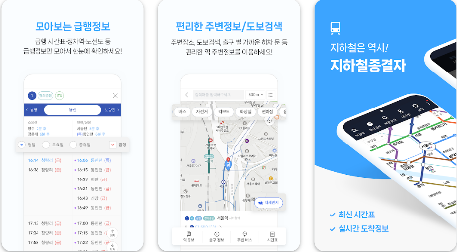 - 특히 지하철종결자 앱은 지하철뿐 아니라 전국 버스 정보, 유실물 안내까지 제공되어 대중교통 이용에 매우 유용합니다.