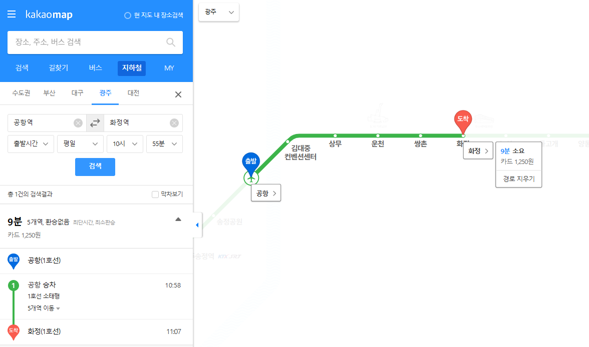 📌 광주 지하철은 단일 노선으로 운영되기 때문에 수도권처럼 거리 비례제가 아닌, 기본 요금제를 적용하고 있습니다.