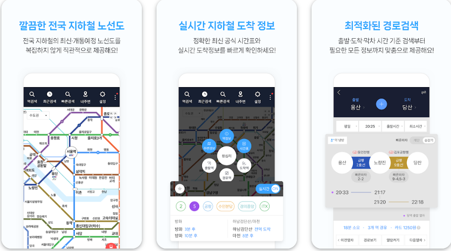 - 실시간 열차 도착 정보뿐 아니라, 역 주변 정보, 환승 노선, 빠른 하차 칸 안내 등 다양한 기능을 한눈에 확인할 수 있어 매우 유용합니다.