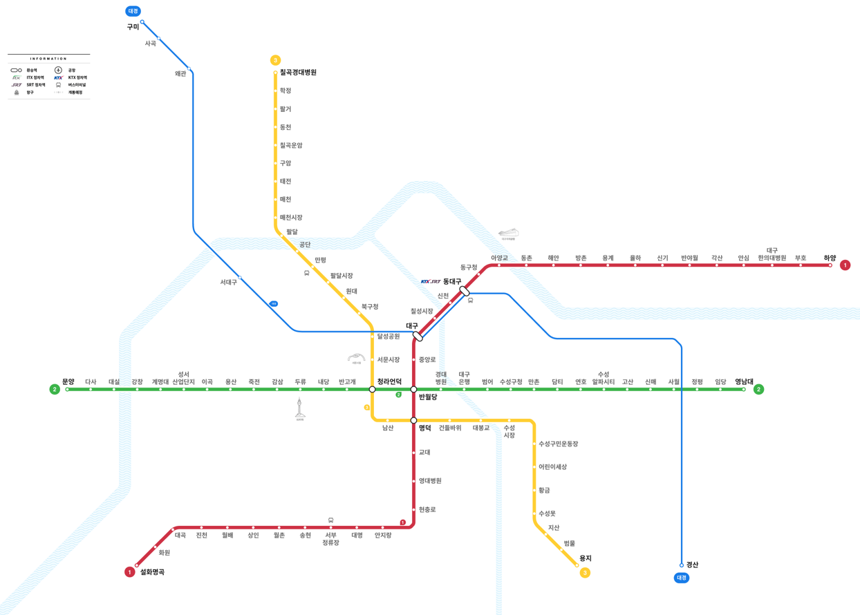 💡 각 노선의 환승역을 잘 활용하면 대구 시내 어디든 보다 빠르고 편리하게 도착할 수 있습니다.