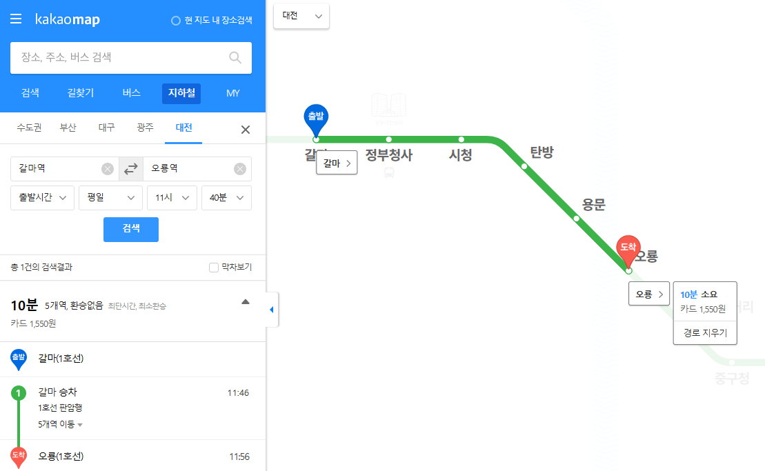 🚉 대전 지하철 시간표 확인하기 (배차간격)