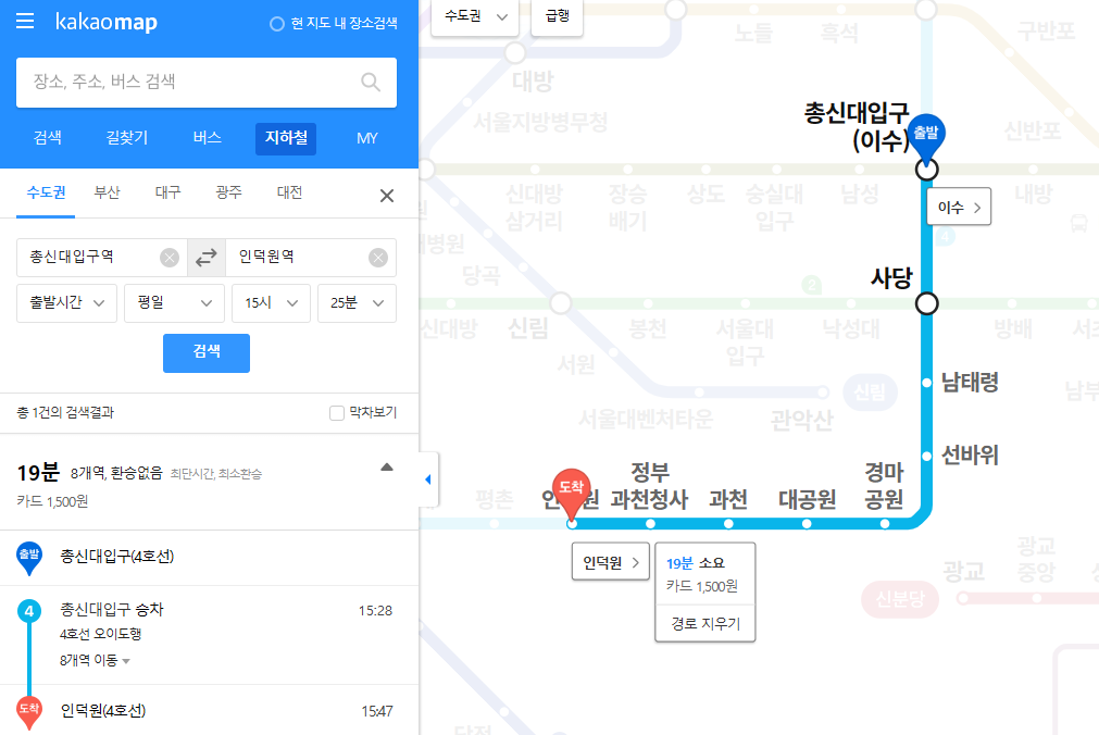 - 노선도와 함께 환승역 정보도 함께 확인 가능
