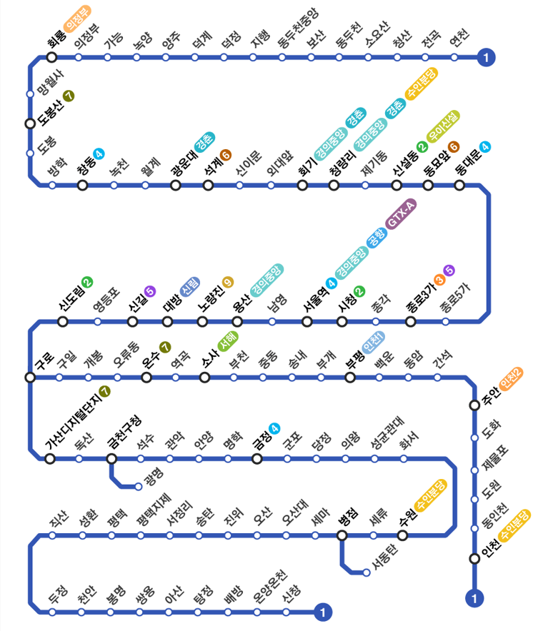 ✅️ 서울 지하철 1호선은 도심과 수도권 외곽 지역을 광범위하게 연결하는 대표적인 장거리 노선입니다. 경부선, 경인선, 경원선 등 다양한 노선과 연계되어 있어 이용 범위가 넓고 접근성도 뛰어난 것이 특징입니다.