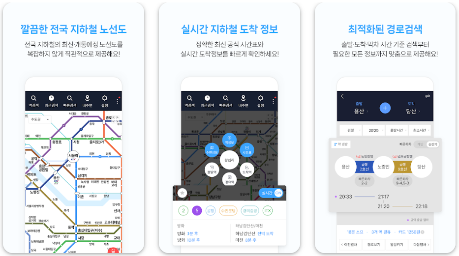 - 카카오맵 역시 실시간 도착 정보와 최적 환승 경로를 알려줘 출발 전 확인용으로 매우 편리합니다.