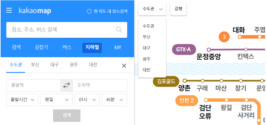 - 전국 지하철 및 버스 연계 정보 확인 가능