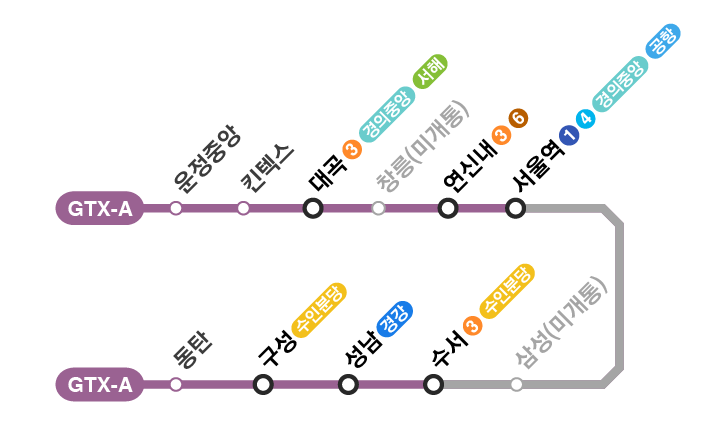 - 운행 구간: 파주 운정역에서 서울역, 삼성역을 거쳐 동탄역까지 이어지는 노선